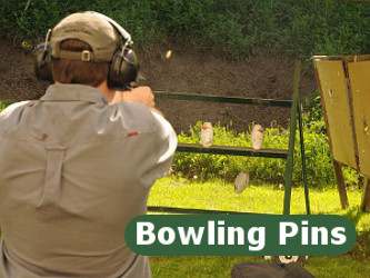 - 22 LR targets are the top 6-in cut from a standard bowling pin. Center-fire targets are the remaining bottom (minus the 6-in cut off for the 22 LR targets) of the bowling pins.
